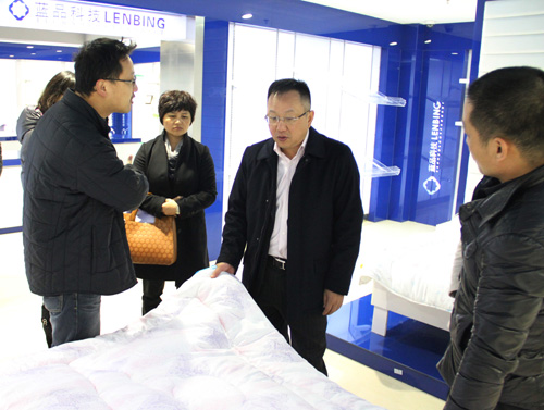 12月18日上午,中国家用纺织品行业协会会长杨兆华、秘书长朱晓红一行,来到江苏蓝品纤维科技发展有限公司,就公司新研制的功能性生态纤维系列产品的生产和推广问题进行视察和指导。公司总经理陆新生、副总经理何晓鸣陪同参观,并针对产品品牌化运作模式及如何提高产品附加值等相关问题进行讲解说明。